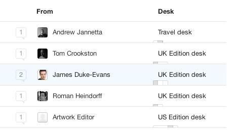 Desk activity and assignment progress. One of the biggest benefits to using Camayak is that everyone in your newsroom can be on the same page (literally) within a few clicks. Part of making that work, is letting editors have a quick insight into how much work each of their desks has got and what stage each of their assignments is at, so they can focus on the things that are lagging and balance the workload across their staff. To aid that, we’ve added a ‘desk’ column to everyone’s dashboard and the archive page, so that it’s clear which desk each assignment belongs to and how far along it is in production. This matches the way we indicate assignment progress on the calendar page.
